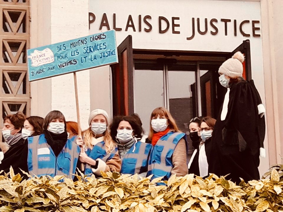 Hier, sur notre pause du déjeuner, nous avons endossé nos chasubles France Victimes, accroché notre manche à balais sur un panneau décoré et marché ensemble pour rejoindre la mobilisation des magistrats, greffiers et avocats du Palais de Justice de Saint-Nazaire. Peu de gens sont au courant, mais il est temps de le dire : nos … Lire la suite Mobilisation du 15 décembre 2021 : des moyens dignes pour les services d’aide aux victimes et la Justice